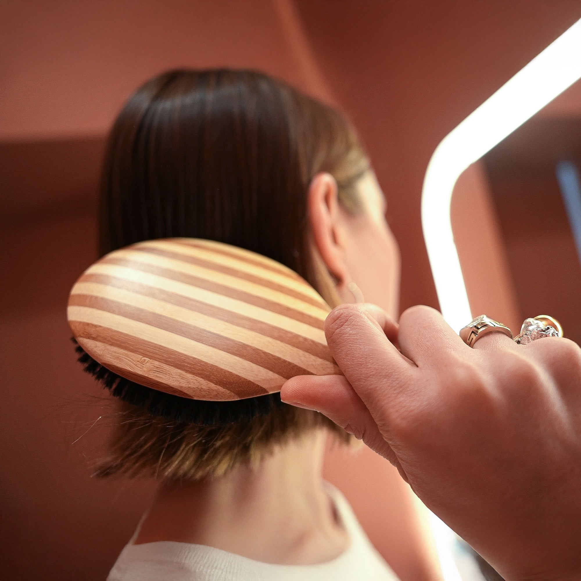 Moins de casse, plus de brillance, plus de douceur. La brosse devient un soin à part entière. Vos longueurs vous remercient, votre routine change.